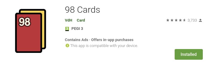Juste pour vous parler de 98 cards, un excellent jeu de cartes pour votre smartphone.