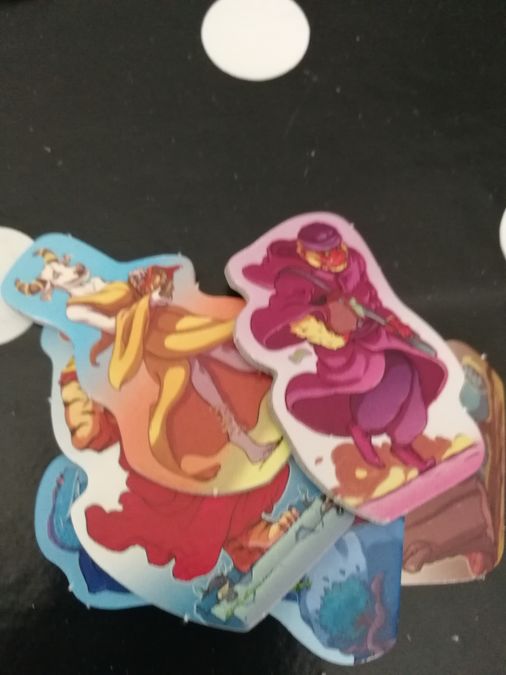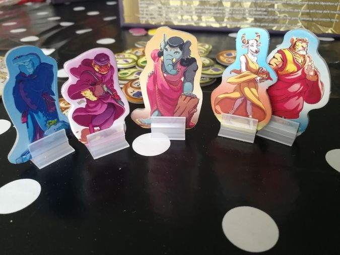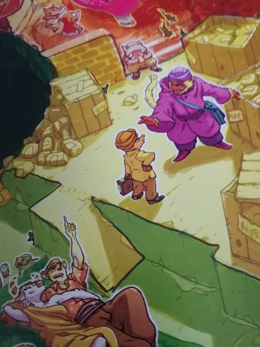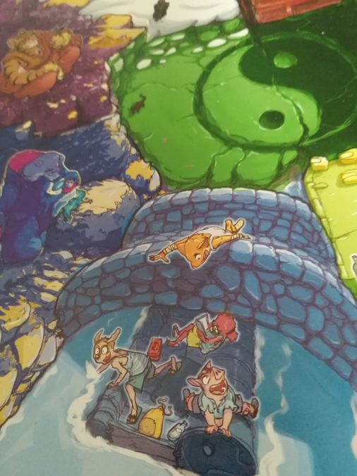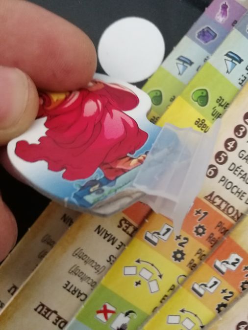 - Oui je sais je suis chiant avec ça, mais j’aurais préféré des vrais figurines à la place de ses pseudos tokens. Il y aurait eu obligatoirement un impact sur le prix d’achat mais je pense que cela aurait vraiment donné un plus au jeu ! D’autant plus que le plateau étant très coloré et les tokens personnages aussi, faut pas être miro...