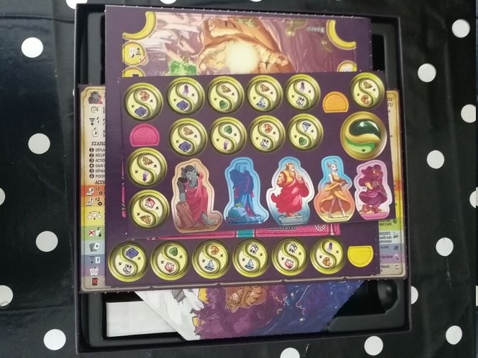 La deuxième est que même si je ne refuse jamais une partie et de n’importe quel style de jeux, en général je suis plus jeux dit velus/experts/kubenbois... Samsara est un jeu de placement mais surtout et avant tout un jeu de deck building. Et pour vous donner un exemple, il y a quelques années j’avais acheté Dominion (peut être que je changerais d’avis maintenant) et le lendemain en accord avec ma femme on le rendait pour prendre à la place Five Tribes ! Un des jeux auxquels nous avons le plus de parties ma femme et moi (un de ses jeux préférés avec 7 Wonders !). Tout ça pour dire que Samsara n’était pas forcément en haut de ma liste des jeux à posséder.
