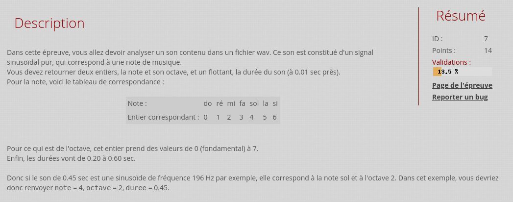 Je ne vous cache pas que cela m'a donné envie d'en refaire, je pense donc que je vais m'attaquer à l'épreuve 7 (Multimédia :: Musical note (7)), qui me semble être une des plus facile dans celles qu'il me reste.